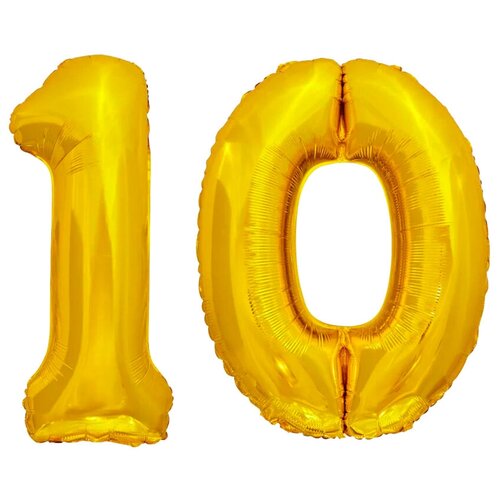 Шар воздушный фольгированный цифра "10" Золотой 102 см. украшение на праздник и на любой значимый день