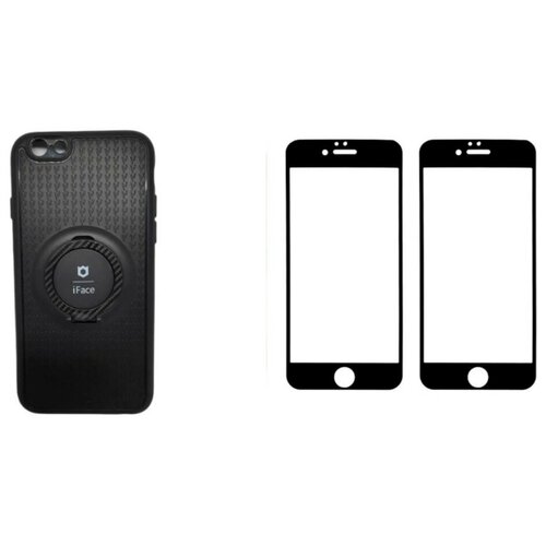 Комплект для Apple Iphone 6 / 6S / на Айфон 6 / 6С : чехол силиконовый с кольцом + два защитных стекла