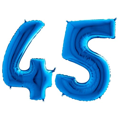 Шар воздушный фольгированный цифра "45" Синий 102 см. украшение на праздник и на любой значимый день