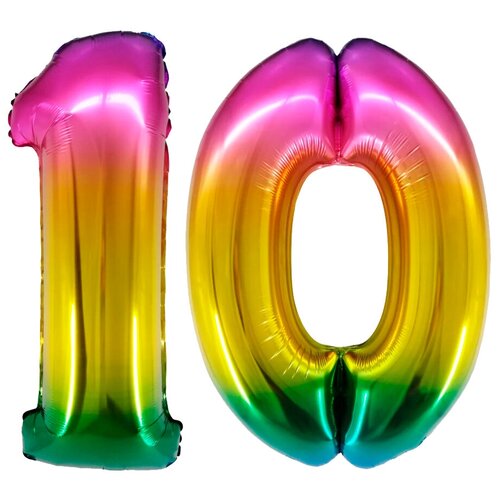 Шар воздушный фольгированный цифра "10" Разноцветный 102 см. украшение на праздник и на любой значимый день