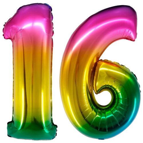 Шар воздушный фольгированный цифра "16" Разноцветный 102 см. украшение на праздник и на любой значимый день
