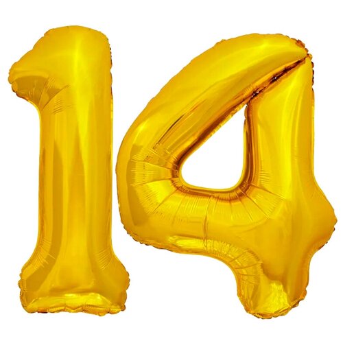 Шар воздушный фольгированный цифра "14" Золотой 102 см. украшение на праздник и на любой значимый день