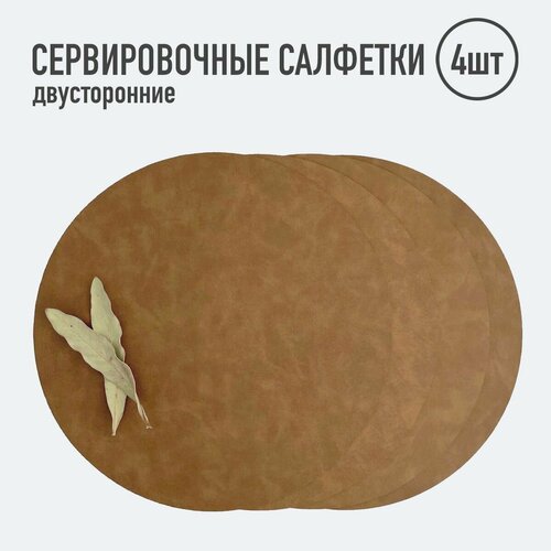 Салфетки для сервировки стола круглые / 4 шт. светло-коричневые / Набор сервировочных салфеток / Двусторонние салфетки / Плейсматы