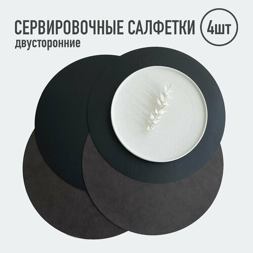 Салфетки для сервировки стола круглые / 4 шт. чёрный/тёмно-коричневый / Набор сервировочных салфеток / Двусторонние салфетки / Плейсматы