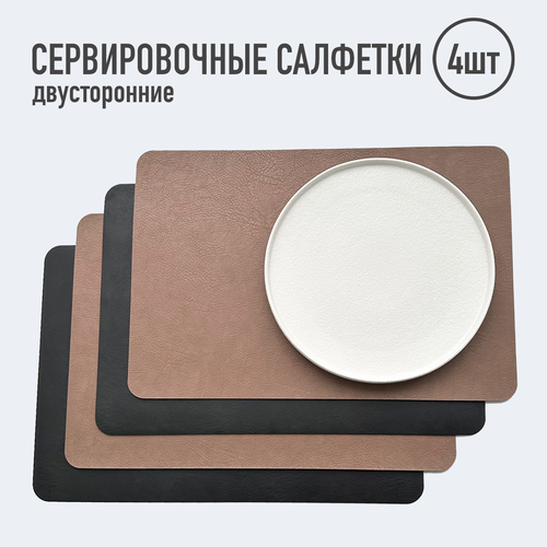 Салфетки для сервировки стола прямоугольные / 4 шт. чёрные/св. кор / Элитные / Набор сервировочных салфеток / Двусторонние салфетки / Плейсматы