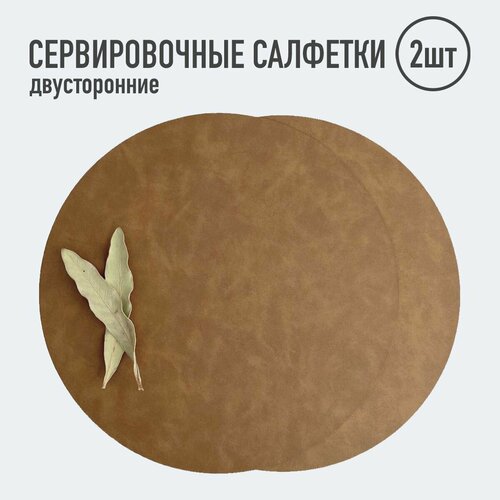 Салфетки для сервировки стола круглые / 2шт. светло-коричневые / Набор сервировочных салфеток / Двусторонние салфетки / Плейсматы