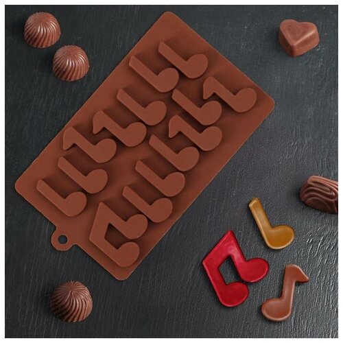 Форма для льда и кондитерских украшений Доляна «Ноты», 19,5×12×1 см, силикон, 15 ячеек, цвет шоколадный (1шт.)