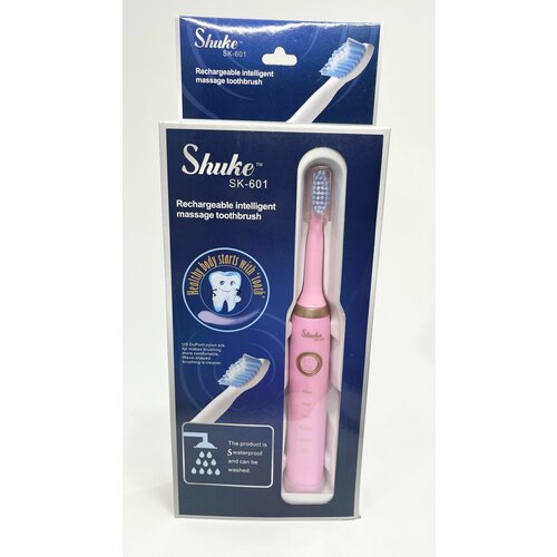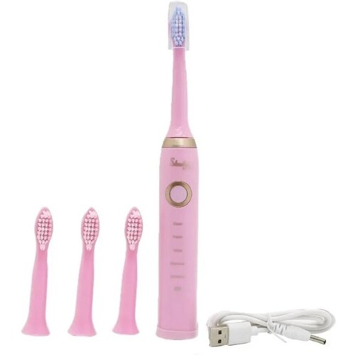 Электрическая зубная щетка Shuke SK-601, 4 насадки, розовая