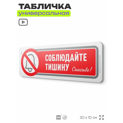 Табличка "Соблюдайте тишину", на дверь и стену, для подъезда, информационная, пластиковая с двусторонним скотчем, 30х10 см, Айдентика Технолоджи