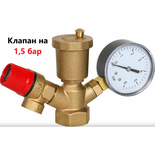 Группа безопасности для котла 1,5 бар, латунь Sibio