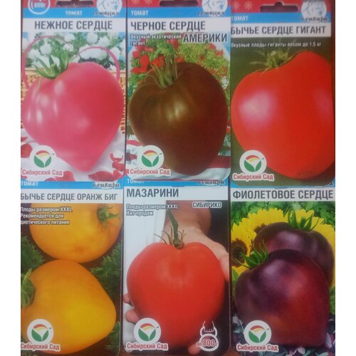 Набор из 6 пачек крупных сердцевидных сибирских томатов