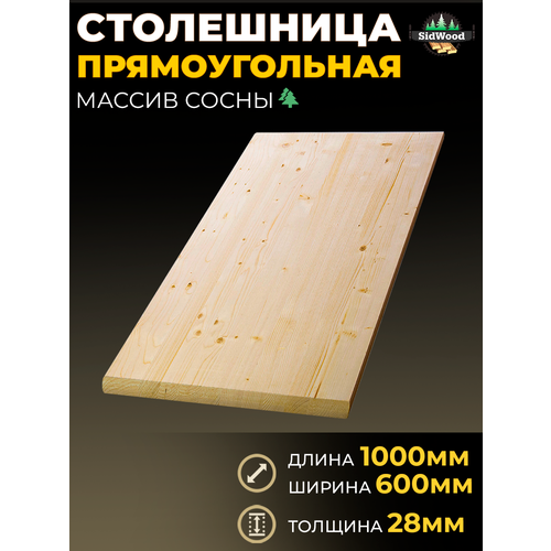 Столешница для стола прямоугольная SidWood 28х600х1000мм, бесцветная, сосна