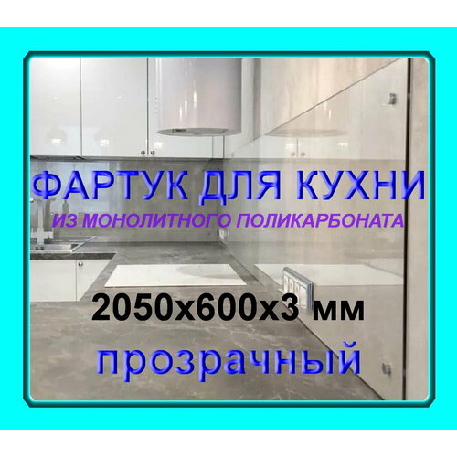 Фартук для кухни на стену из полимерного стекла/Экран защитный от брызг "IRROX" (Монолитный поликарбонат 2050*600*3мм).