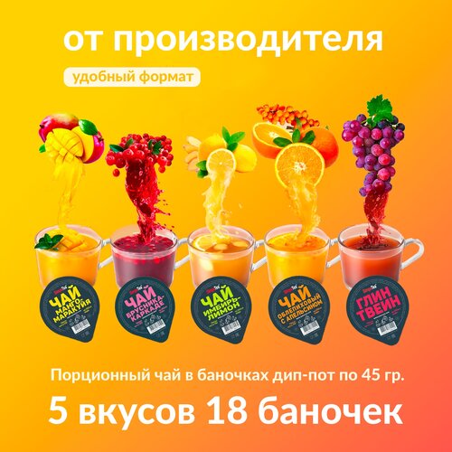 Чай порционный Simpa Tea микс из 5 вкусов Манго-маракуйя, Облепиха с апельсином, Имбирь-лимон, Брусника-каркаде, Глинтвейн 18 шт по 45 г