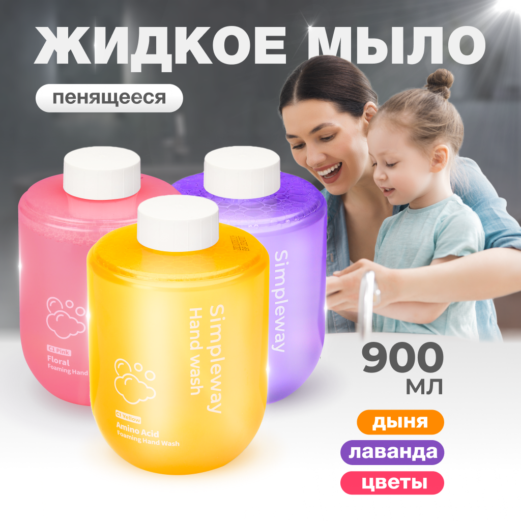SIMPLEWAY Сменное жидкое мыло для сенсорного дозатора: Лаванда, Дыня, Цветочный аромат 1800.0