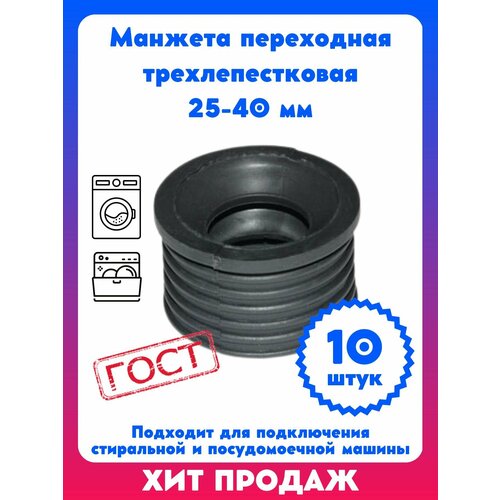 Манжета переходная трехлепестковая 25-40 мм (10 шт) для стиральной и посудомоечной машины