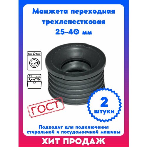 Манжета переходная трехлепестковая 25-40 мм (2 шт) для стиральной и посудомоечной машины