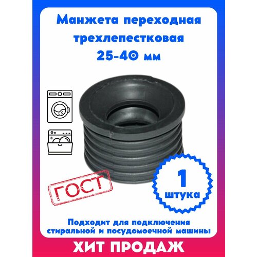 Манжета переходная трехлепестковая 25-40 мм для стиральной и посудомоечной машины