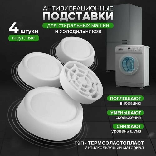 Антивибрационные подставки для стиральной машины и для холодильника, круглые, 4 штуки, резиновые ножки под стиральную машину и под холодильник