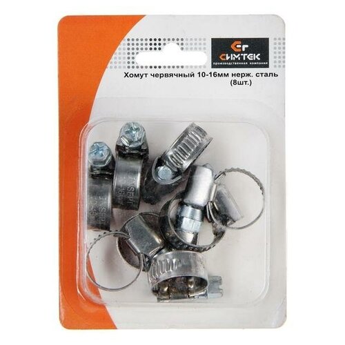 Хомут червячный "Симтек", диаметр 10-16 мм, нержавеющая сталь, в блистере, 8 шт.