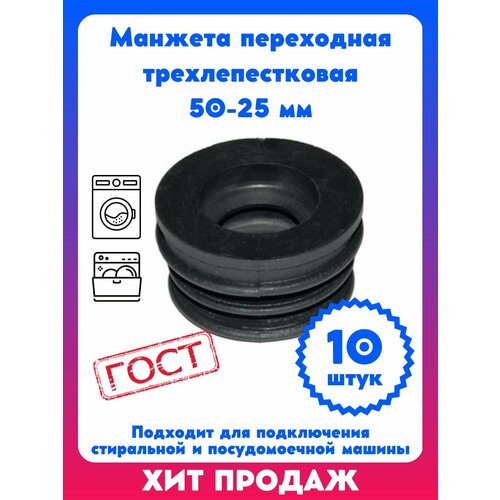 Манжета переходная трехлепестковая 25-50 мм (10 шт) для стиральной и посудомоечной машины