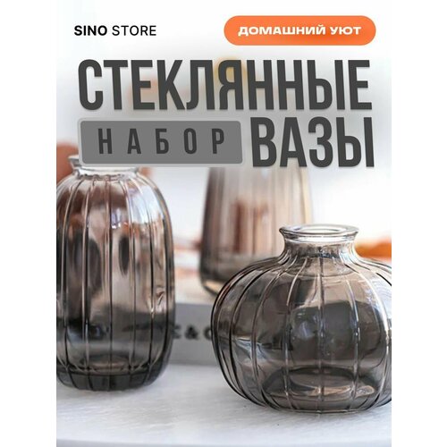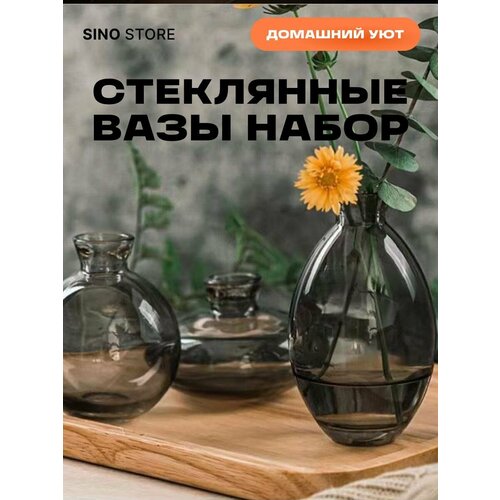 Интерьерный набор стеклянных ваз 3 штуки