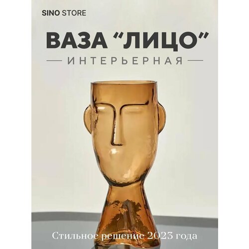 Ваза для цветов и сухоцветов Лицо, стеклянная интерьерная