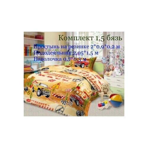 Постельное белье детское, бязь (1.5-спальное) Машинки