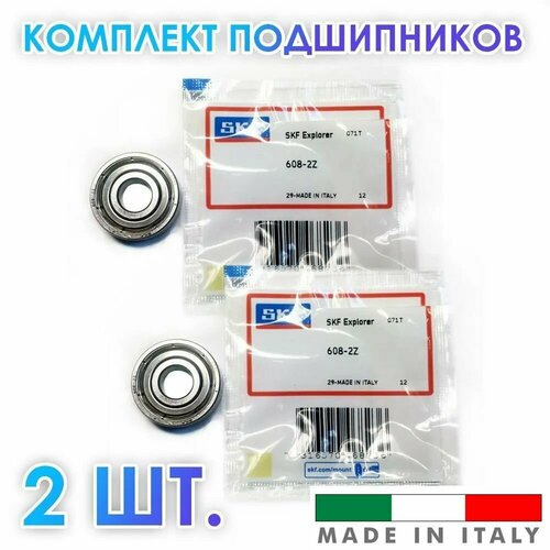 Комплект 2 шт. Подшипник 608-2RS (180018) 6082RS SKF Швеция. Made in Italy. Для самокатов, роликов, скейтбордов и т. п. ABEC-7.