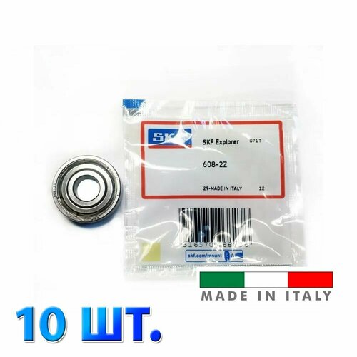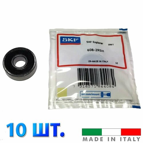 Комплект 10 шт. Подшипник 608-2RS (180018) 6082RS SKF Швеция. Made in Italy. Для самокатов, роликов, скейтбордов и т. п. ABEC-7.