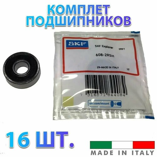 Комплект 16 шт. Подшипник 608-2RS (180018) 6082RS SKF Швеция. Made in Italy. Для самокатов, роликов, скейтбордов и т. п. ABEC-7.