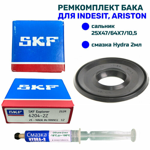Ремкомплект бака для Indesit, Hotpoint Ariston 6203, 6204, 25X47/64X7/10,5, смазка 2 мл
