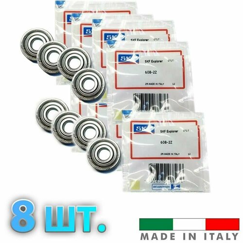 Комплект 8 шт. Подшипник 608-2RS (180018) 6082RS SKF Швеция. Made in Italy. Для самокатов, роликов, скейтбордов и т. п. ABEC-7.