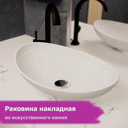 Раковина накладная из искусственного камня (белый мрамор)