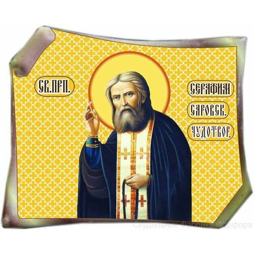 Икона на фарфоровом свитке (Св. прп. Серафим Саровский)