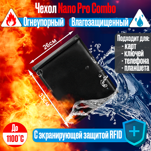 Огнеупорный водостойкий экранирующий чехол Фарадея для карт, денег, ключей, телефона и планшета Nano Pro Combo