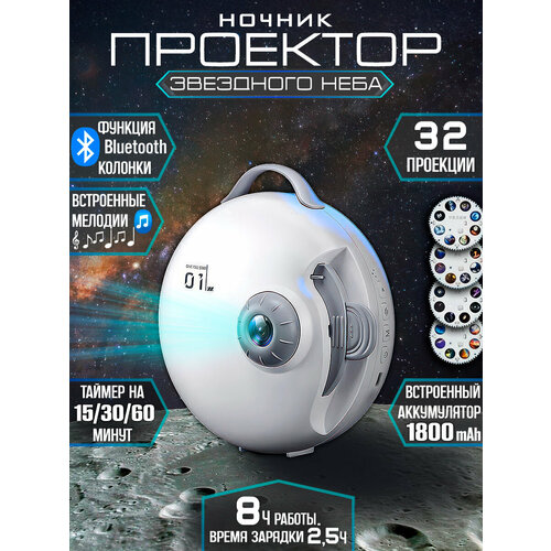 Проектор звездного неба ночник (домашний планетарий) с bluetooth динамиком Star Projector SP40 White