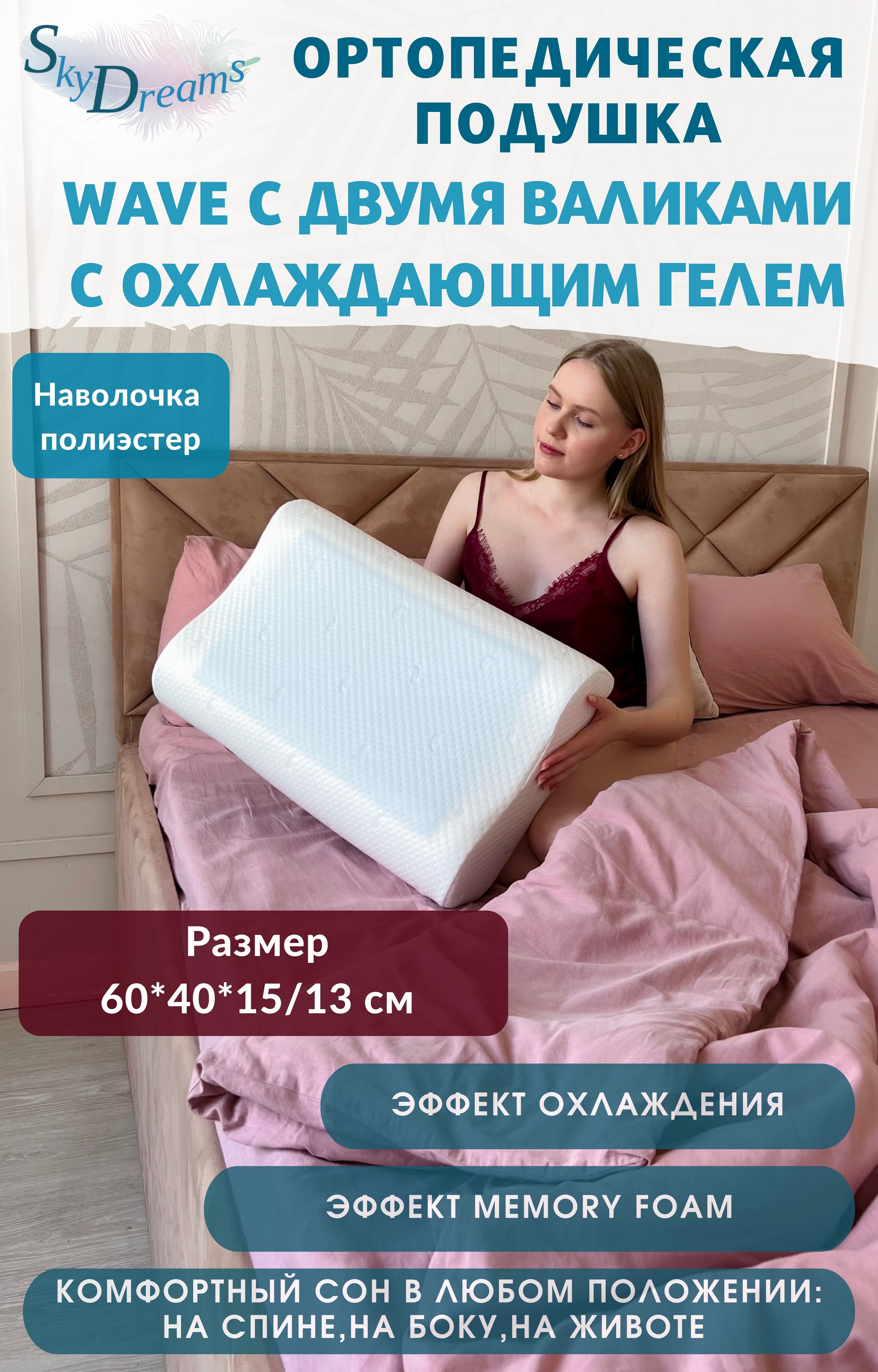 Двусторонняя анатомическая подушка SkyDreams WAVE GEL с охлаждающим гелем и Memory 600013067466