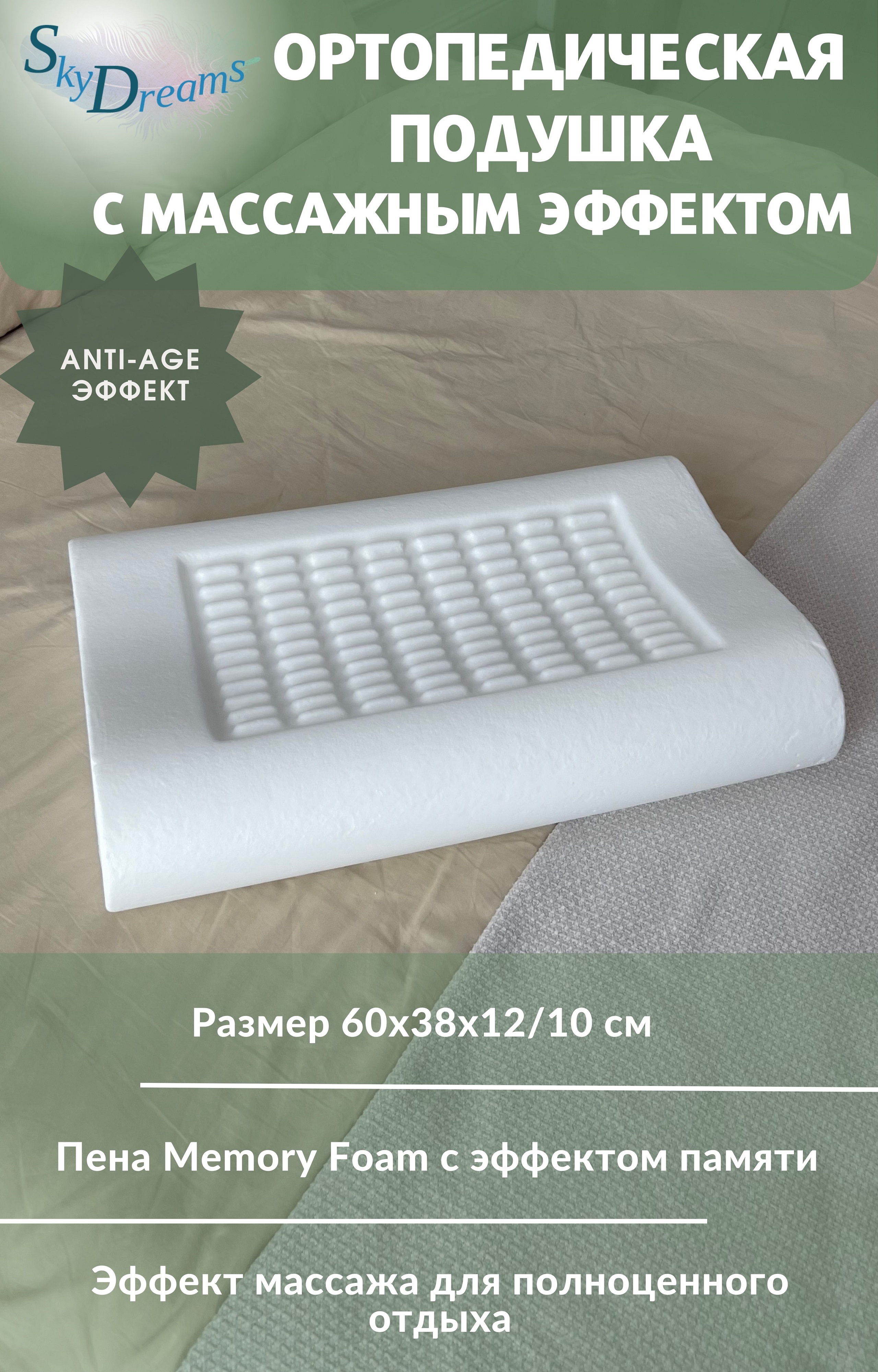 Анатомическая подушка SkyDreams против морщин с эффектом памяти