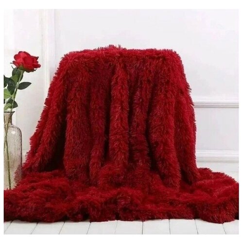 Плед-травка бордовый 220х240/ Плед пушистый / Плед меховой