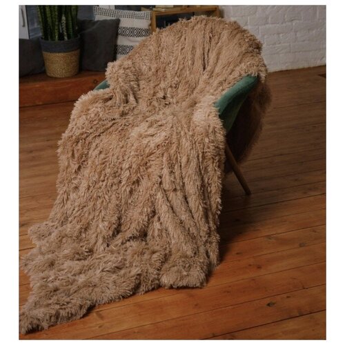 Плед-покрывало коричневый 220х240/ Плед пушистый / Плед меховой