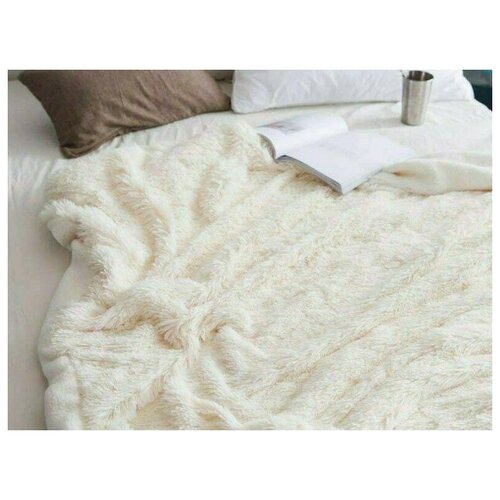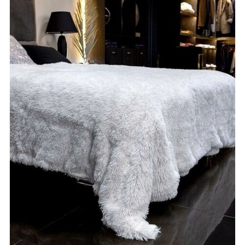 Плед-покрывало белый 220х240/ Плед пушистый / Плед меховой
