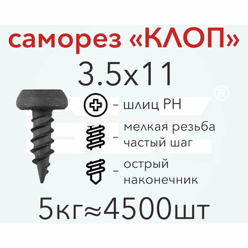 Саморез "клоп" 3.5х11 (5кг 4500 шт.) острый, металл-металл