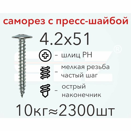 Саморез 4.2х51 с пресс-шайбой (10кг 2300 шт.) острый, металл-металл