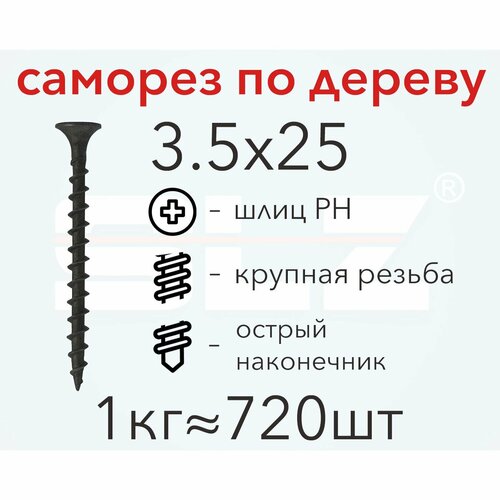 Саморез 3.5х25 (1кг 720 шт.) крупная резьба, гипсокартон-дерево