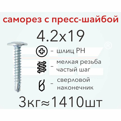 Саморез 4.2х19 с пресс-шайбой (3кг 1410 шт.) сверло, металл-металл