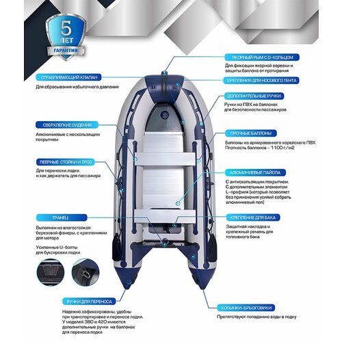 Надувная лодка ПВХ SMARINE SDP MAX серо-синяя 365 моторно-гребная