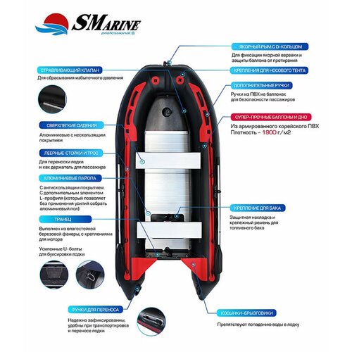 Надувная лодка ПВХ моторно-гребная SMarine SDP Strong 380 красный черный