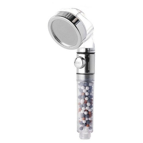 Лейка для душа (душевая насадка-фильтр) с турмалином и ионизацией, кнопкой стоп (диаметр душевой головки 6.3 см металлический рассекатель)