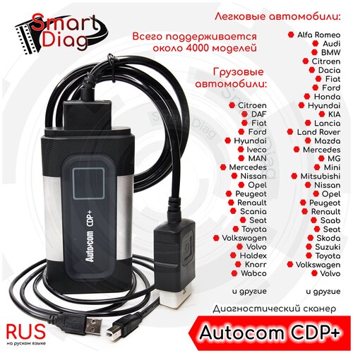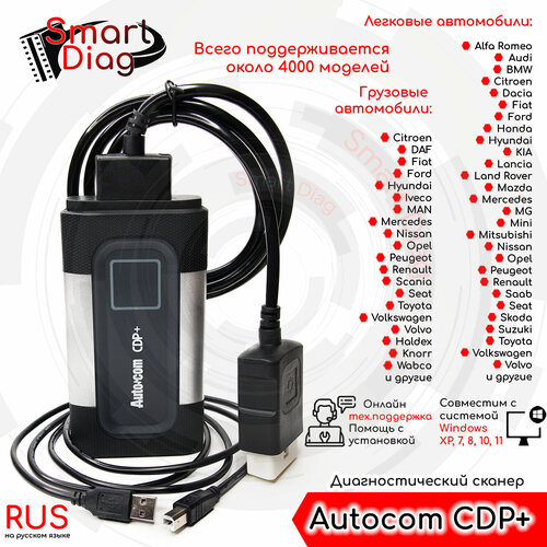 Диагностический мультимарочный автосканер Autocom CDP+ (USB + Bluetooth) + ПО 2021.11, инструкции по установке